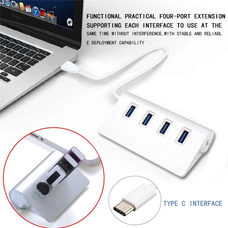 BEST QUALITY Basix Type-C To 4-Port USB3.0 Hub USB 3.1 Adapter For PC For Mac 12 inch Type-C Cable For Mac Usb C